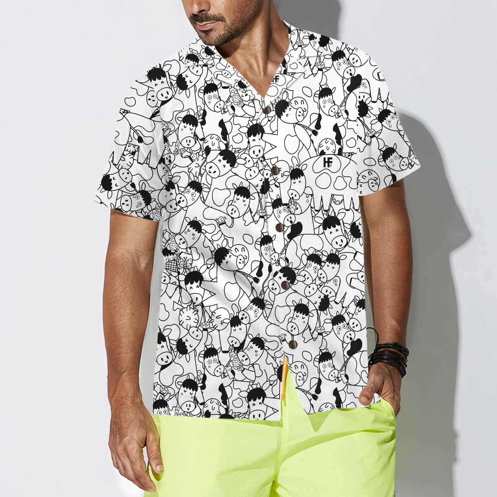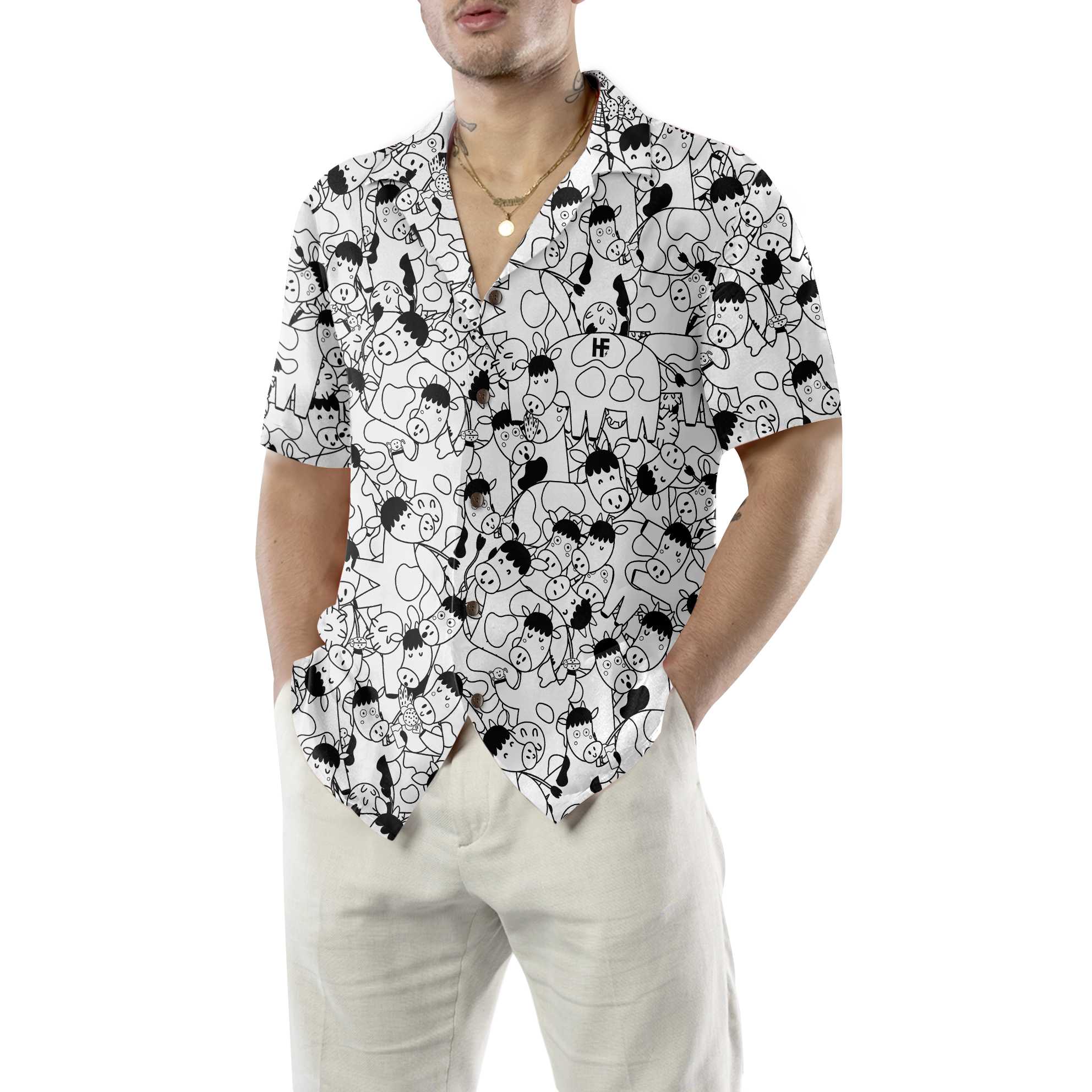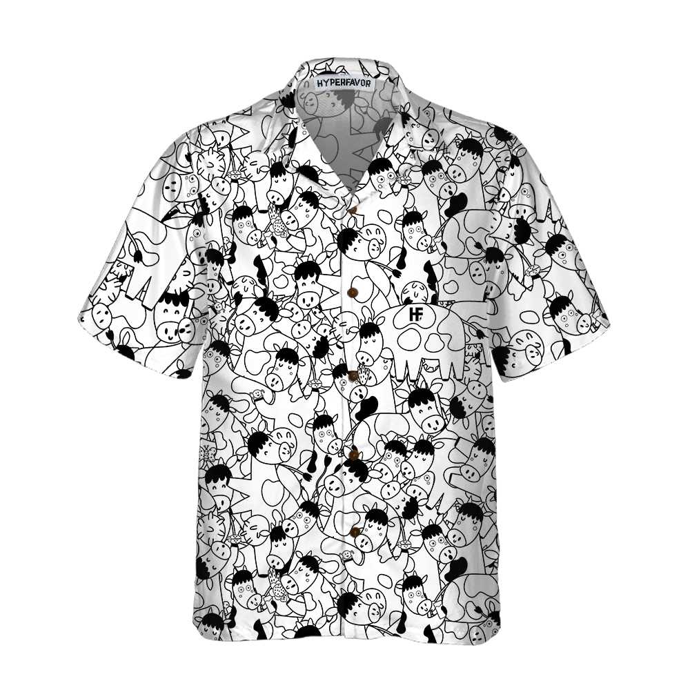 Funny Cow Doodle Pattern Hawaiian Shirt, Cow Shirt For Men & Women, Funny Cow Print Shirt