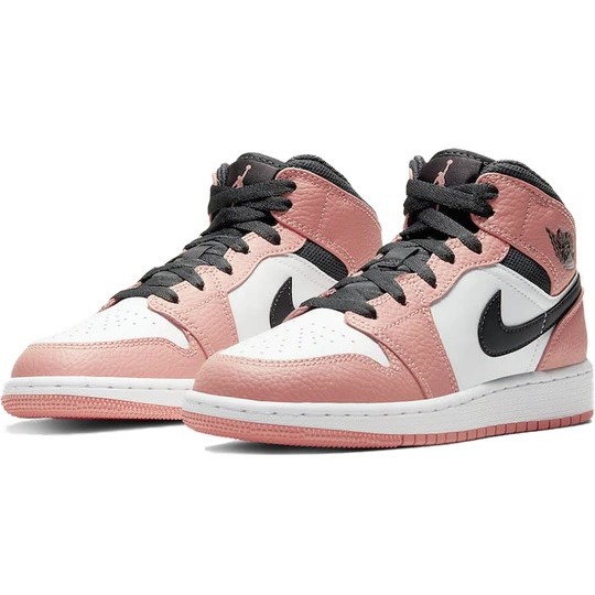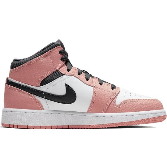 The (GS) Air Jordan 1 Mid ‘Pink Quartz’ 555112-603 (model number 555112) was released on February 28, 2020. Part of the Air Jordan 1 Mid series, this sneaker features a regular sole thickness and a leather upper for a premium look and feel. It uses a traditional lacing system and is built on a durable rubber sole. Designed as a mid top with a round, it’s ideal for lifestyle wear. In terms of functionality, the shoe is cushioning, slip-resistant, wearable, making it suitable for every day wear all season. The main color is Pink, and the official colorway is Pink Quartz/Dark Smoke Grey/White.