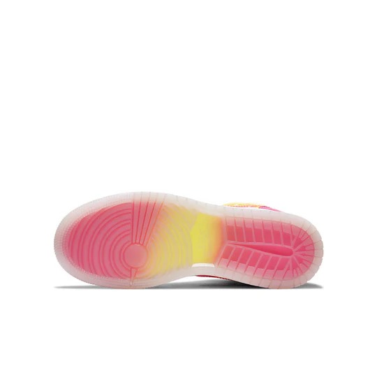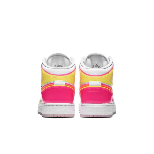 The (GS) Air Jordan 1 Mid SE ‘Edge Glow’ CV4611-100 (model number CV4611) was released on July 04, 2020. Part of the Air Jordan 1 Mid series, this sneaker features a regular sole thickness and a leather upper for a premium look and feel. It uses a traditional lacing system and is built on a durable rubber sole. Designed as a mid top with a round, it’s ideal for lifestyle wear. In terms of functionality, the shoe is cushioning, slip-resistant, wearable, making it suitable for every day wear all season. The main color is White, and the official colorway is White/Hyper Crimson/Pink Blast/Lemon Venom.