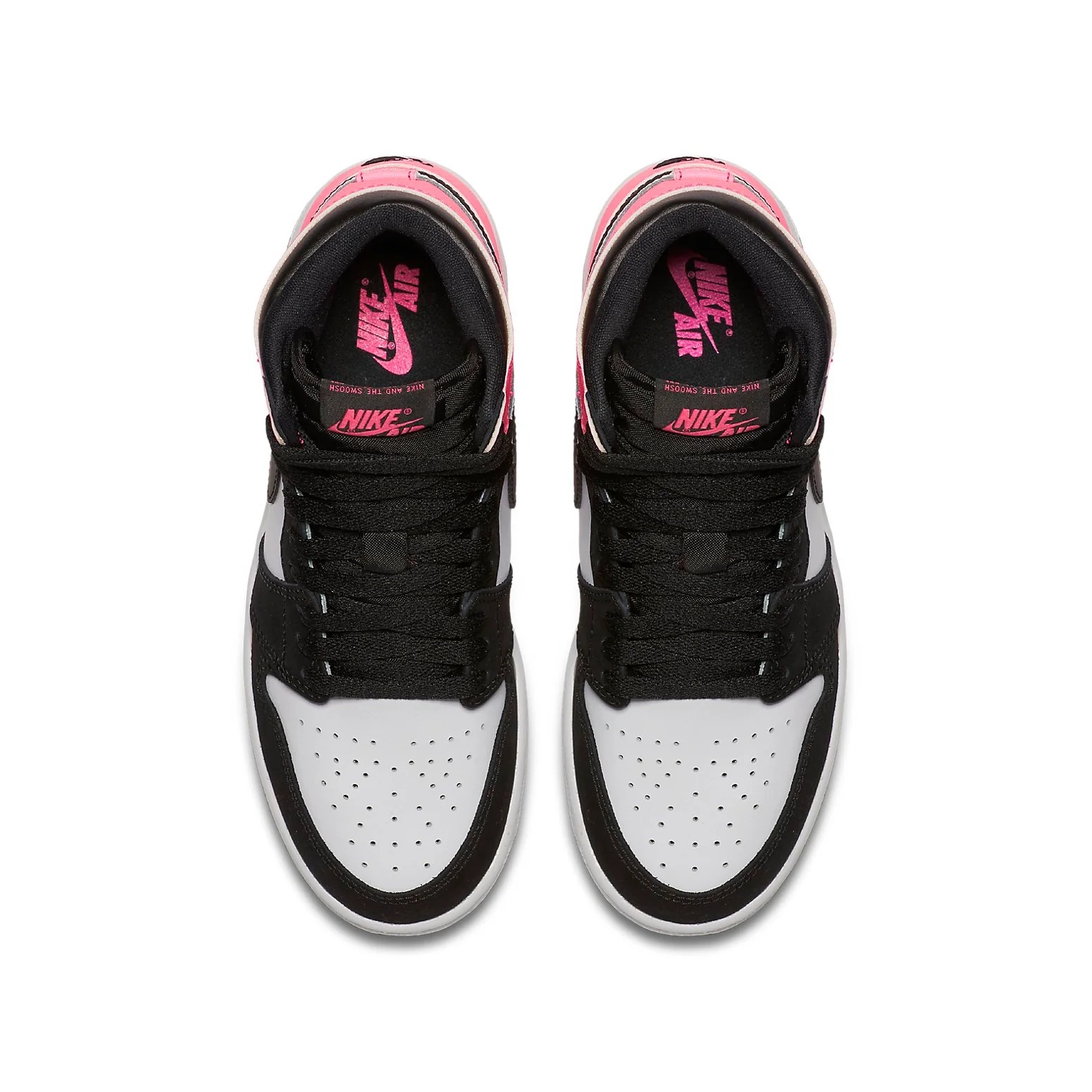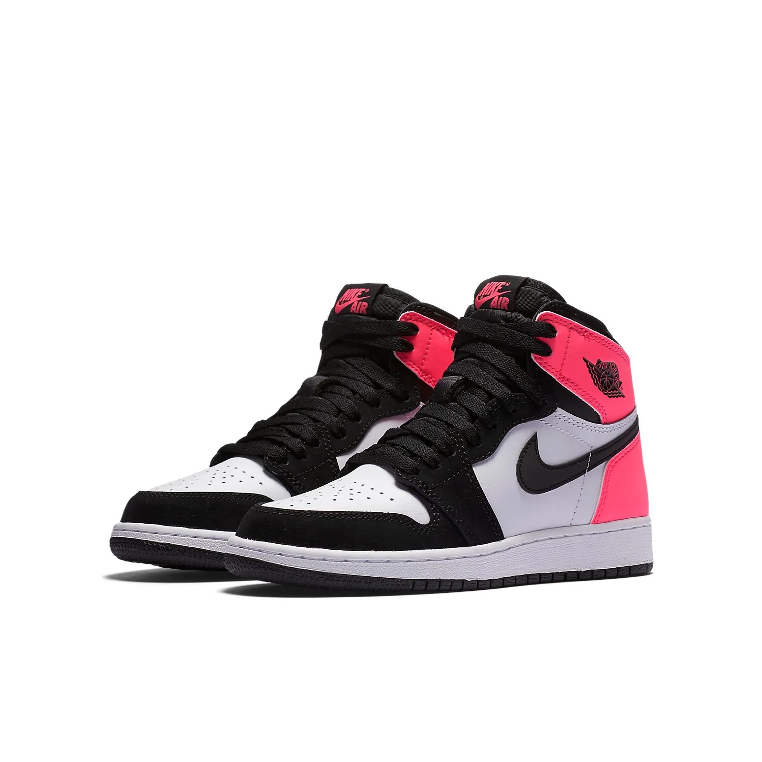 The (GS) Air Jordan 1 Retro High ‘Valentine’s Day 2017’ 881426-009 (model number 881426) was released on February 10, 2017. Part of the Air Jordan 1 High series, this sneaker features a regular sole thickness and a leather upper for a premium look and feel. It uses a traditional lacing system and is built on a durable rubber sole. Designed as a high top with a round, it’s ideal for lifestyle wear. In terms of functionality, the shoe is slip-resistant, lightweight, making it suitable for every day wear all season. The main color is Black, and the official colorway is Black/Black-Hyper Pink-White.