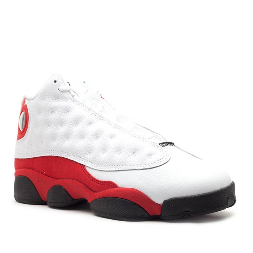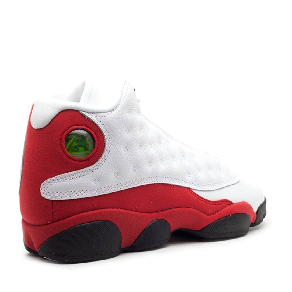 The (GS) Air Jordan 13 Retro ‘Cherry’ 2010 414574-101 (model number 414574) was released on December 17, 2010. Part of the Air Jordan 13 High series, this sneaker features a regular sole thickness and a leather upper for a premium look and feel. It uses a traditional lacing system and is built on a durable rubber sole. Designed as a high top with a round, it’s ideal for lifestyle wear. In terms of functionality, the shoe is slip-resistant, cushioning, making it suitable for every day wear all season. The main color is White, and the official colorway is White.