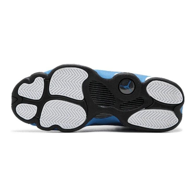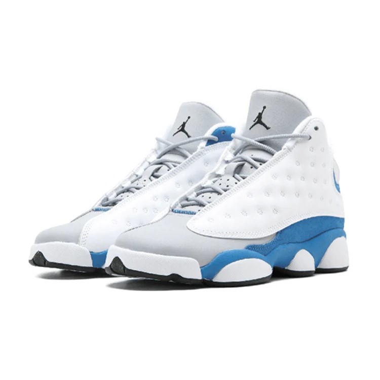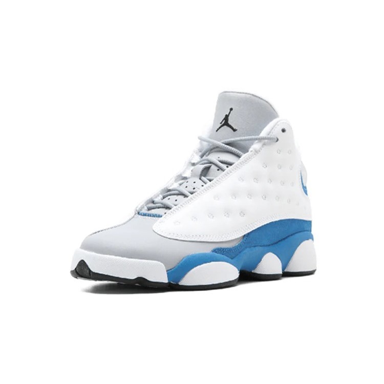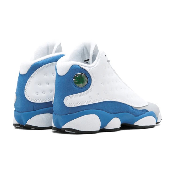 The (GS) Air Jordan 13 Retro ‘Italy Blue’ 439358-107 (model number 439358) was released on December 01, 2017. Part of the Air Jordan 13 High series, this sneaker features a regular sole thickness and a leather upper for a premium look and feel. It uses a traditional lacing system and is built on a durable rubber sole. Designed as a high top with a round, it’s ideal for lifestyle wear. In terms of functionality, the shoe is supportive, cushioning, making it suitable for every day wear all season. The main color is Blue, and the official colorway is White/Italy Blue-Wolf Grey-Black.