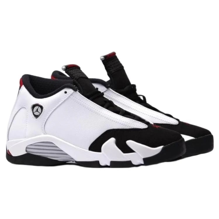 The (GS) Air Jordan 14 Retro ‘Black Toe’ 2014 654963-102 (model number 654963) was released on September 20, 2014. This sneaker features a regular sole thickness and a leather upper for a premium look and feel. It uses a traditional lacing system and is built on a durable rubber sole. Designed as a high top with a round, it’s ideal for lifestyle wear. In terms of functionality, the shoe is slip-resistant, lightweight, making it suitable for every day wear all season. The main color is White, and the official colorway is White/Blck-Vrsty Rd-Mtllc Slvr.