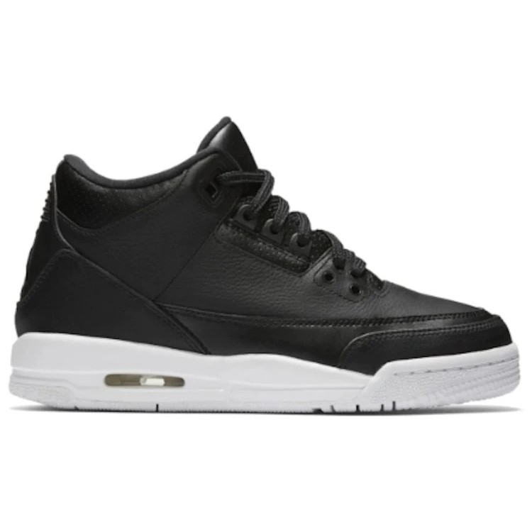 The (GS) Air Jordan 3 Retro ‘Cyber Monday’ 398614-020 (model number 398614) was released on October 14, 2016. This sneaker features a regular sole thickness and a leather upper for a premium look and feel. It uses a traditional lacing system and is built on a durable rubber sole. Designed as a high top with a round, it’s ideal for lifestyle wear. In terms of functionality, the shoe is balancing, cushioning, making it suitable for every day wear all season. The main color is Black, and the official colorway is Black/Black-White.