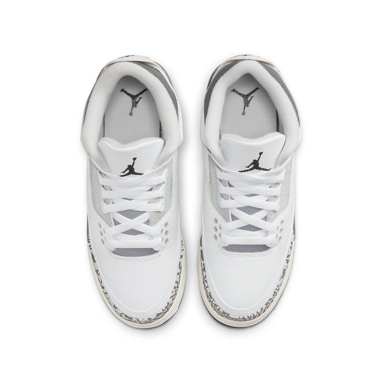 The (GS) Air Jordan 3 Retro ‘Hide N’ Sneak’ DX6665-100 (model number DX6665) was released on June 06, 2023. This sneaker features a regular sole thickness and a leather upper for a premium look and feel. It uses a traditional lacing system and is built on a durable rubber sole. Designed as a high top with a round, it’s ideal for lifestyle wear. In terms of functionality, the shoe is well-cushioned and slip-resistant, making it suitable for every day wear. The main color is White, and the official colorway is White/Black/Iron/Sail/Cement Grey.