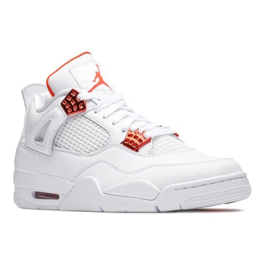 The (GS) Air Jordan 4 Retro ‘Orange Metallic’ 408452-118 (model number 408452) was released on May 01, 2020. This sneaker features a regular sole thickness and a leather upper for a premium look and feel. It uses a traditional lacing system and is built on a durable rubber sole. Designed as a high top with a round, it’s ideal for lifestyle wear. In terms of functionality, the shoe is slip-resistant, wearable, cushioning, making it suitable for every day wear. The main color is White, and the official colorway is White/Orange.