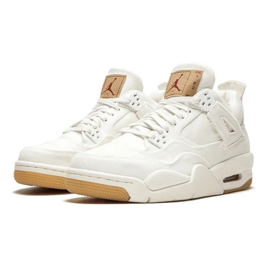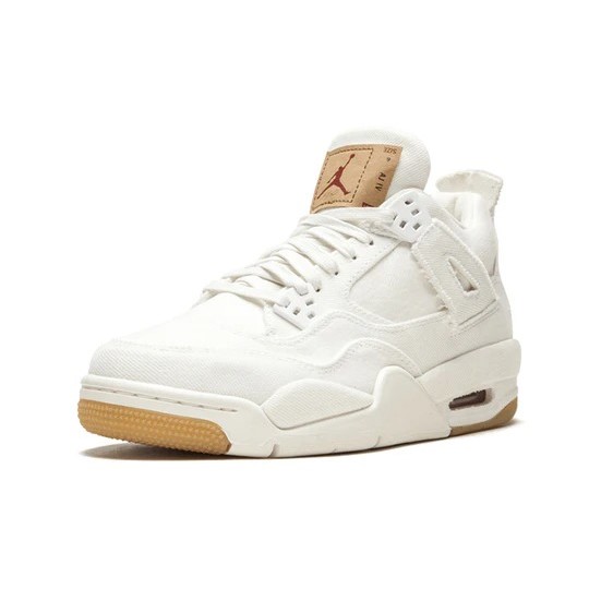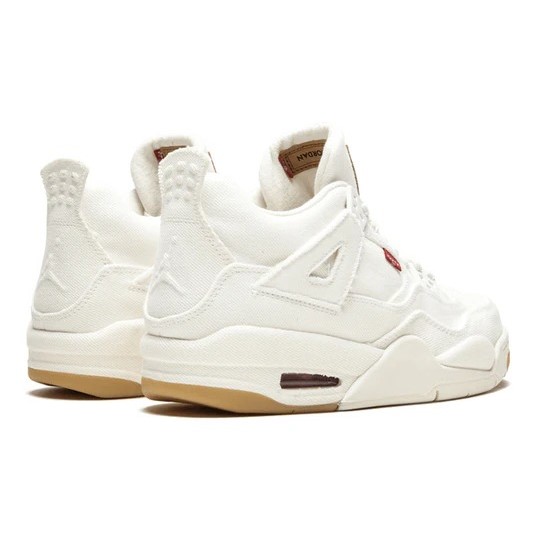 The (GS) Air Jordan 4 Retro x Levi’s ‘White Denim’ AQ9103-100 (model number AQ9103) was released on June 29, 2018. This sneaker features a regular sole thickness and a leather upper for a premium look and feel. It uses a traditional lacing system and is built on a durable rubber sole. Designed as a high top with a round, it’s ideal for lifestyle wear. In terms of functionality, the shoe is cushioning, slip-resistant, making it suitable for every day wear all season. The main color is White, and the official colorway is White Denim.