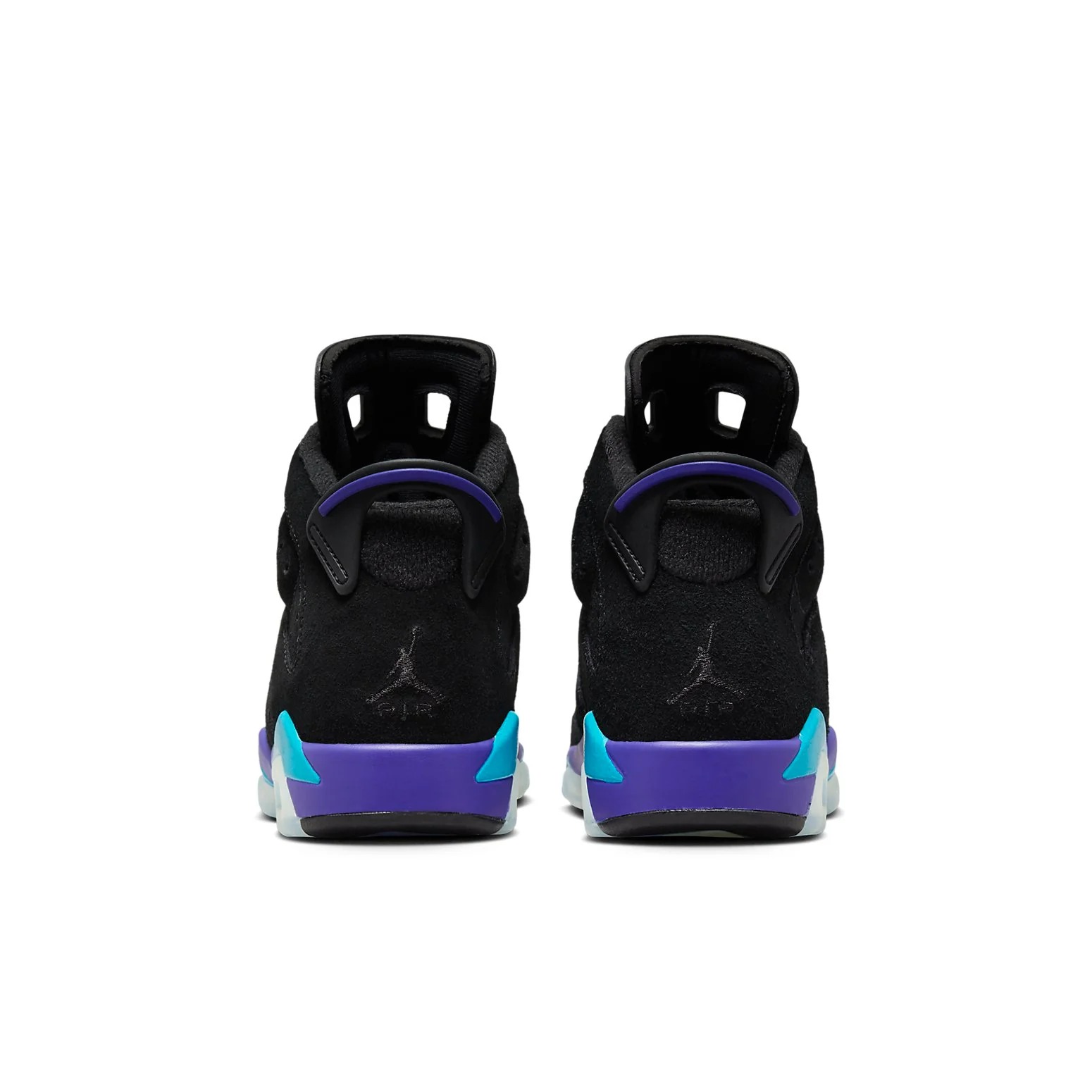 The (GS) Air Jordan 6 Retro ‘Aqua’ 384665-004 (model number 384665) was released on October 07, 2023. Part of the Air Jordan 6 High series, this sneaker features a regular sole thickness and a leather upper for a premium look and feel. It uses a traditional lacing system and is built on a durable rubber sole. Designed as a high top with a round, it’s ideal for lifestyle wear. In terms of functionality, the shoe is well-cushioned and slip-resistant, making it suitable for every day wear. The main color is black, and the official colorway is Black/Bright Concord/Aquatone.