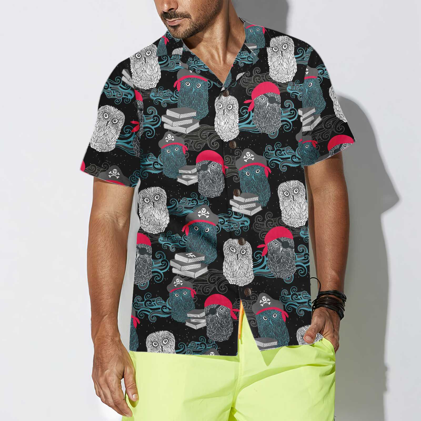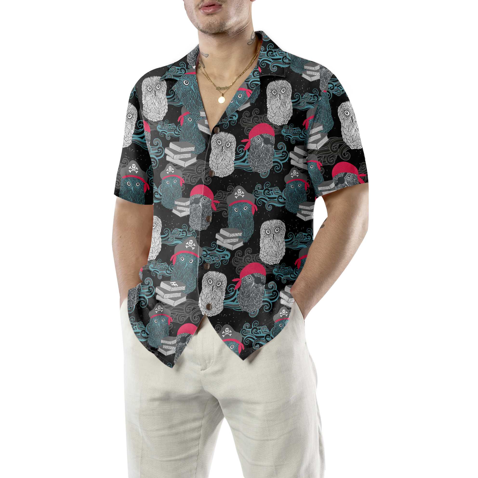 Owl Pirates Hawaiian Shirt, Cool Pirate Shirt For Adults, Pirate Pattern Shirt For Men