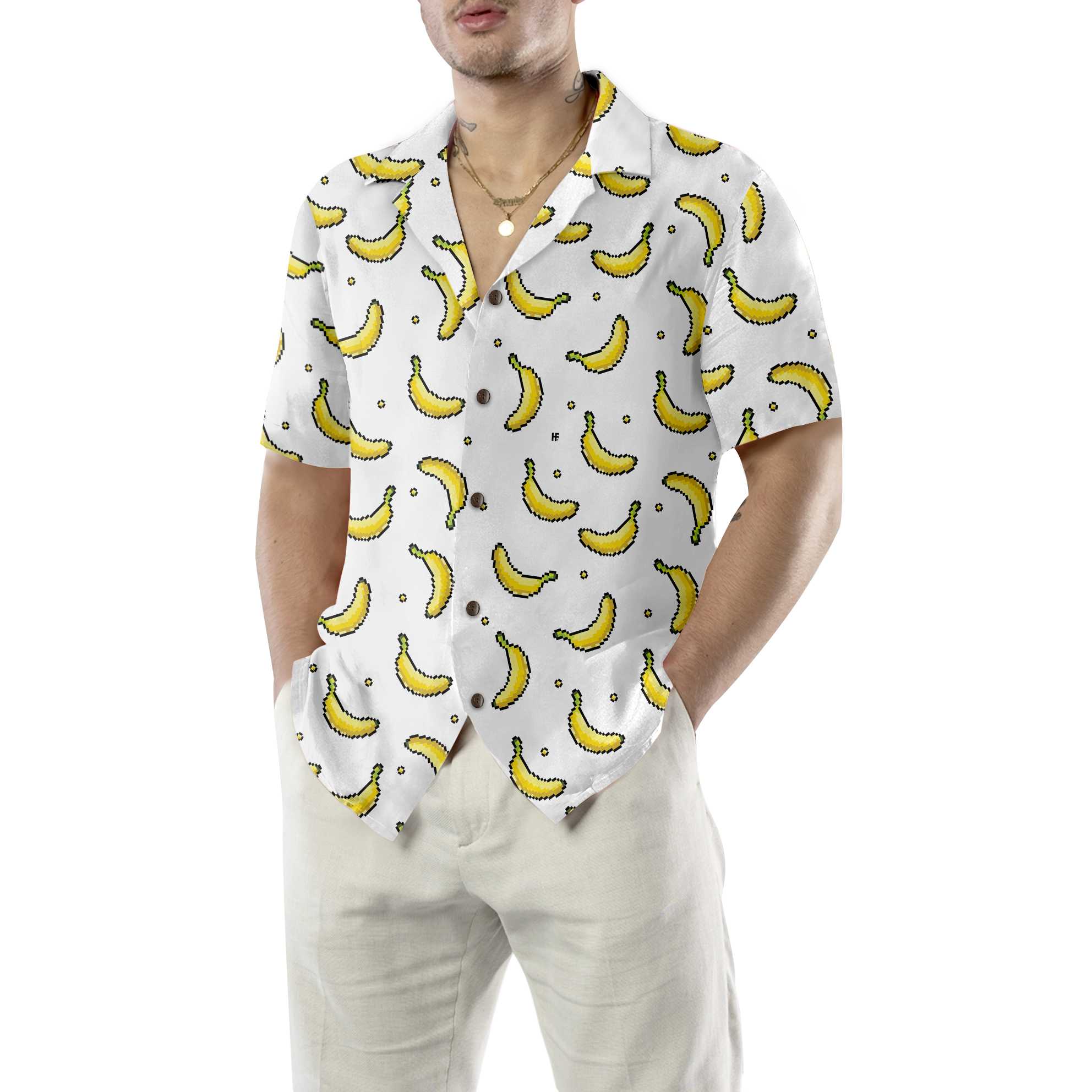 Pixel Banana Pattern Hawaiian Shirt, Funny Banana Shirt For Adults, Banana Pattern Shirt