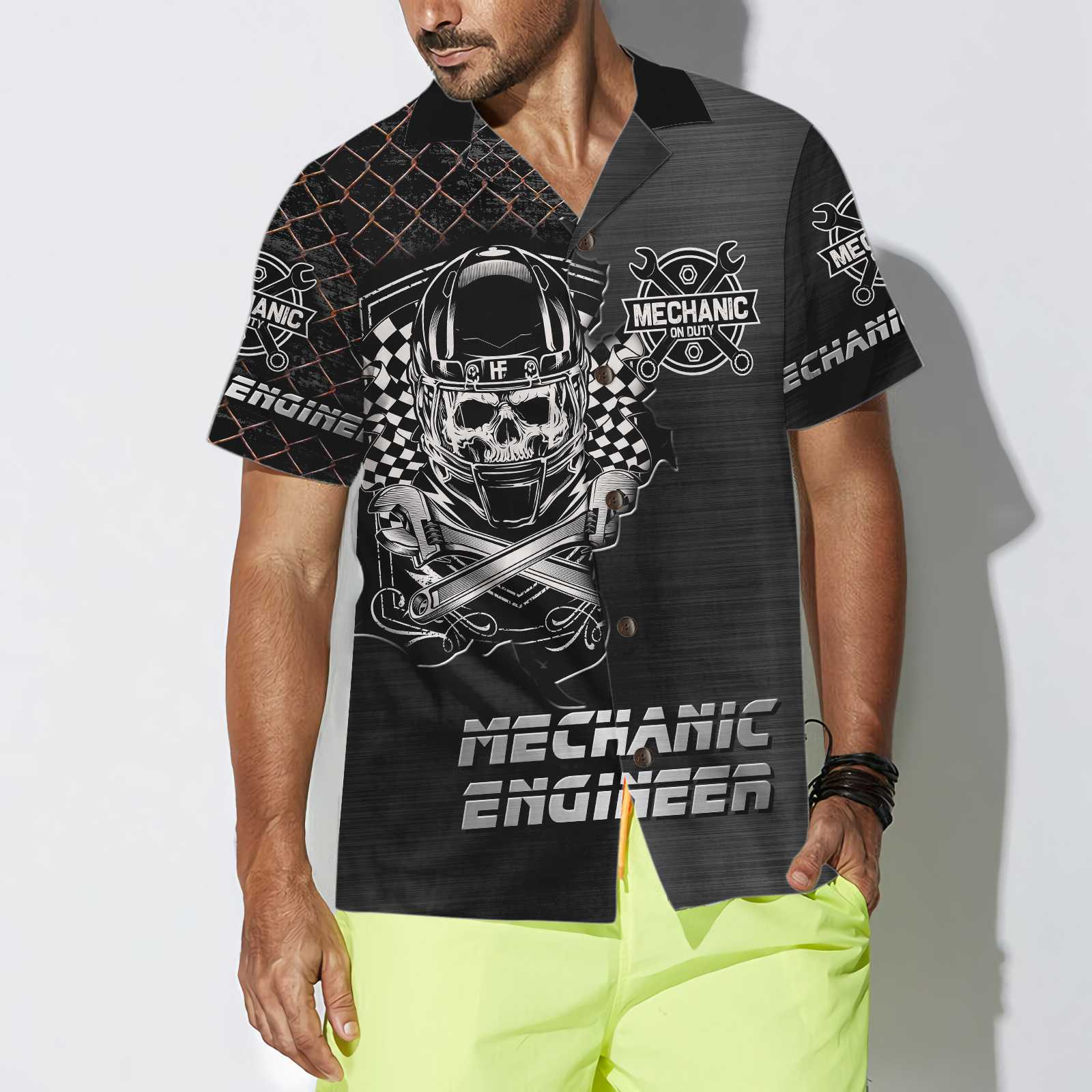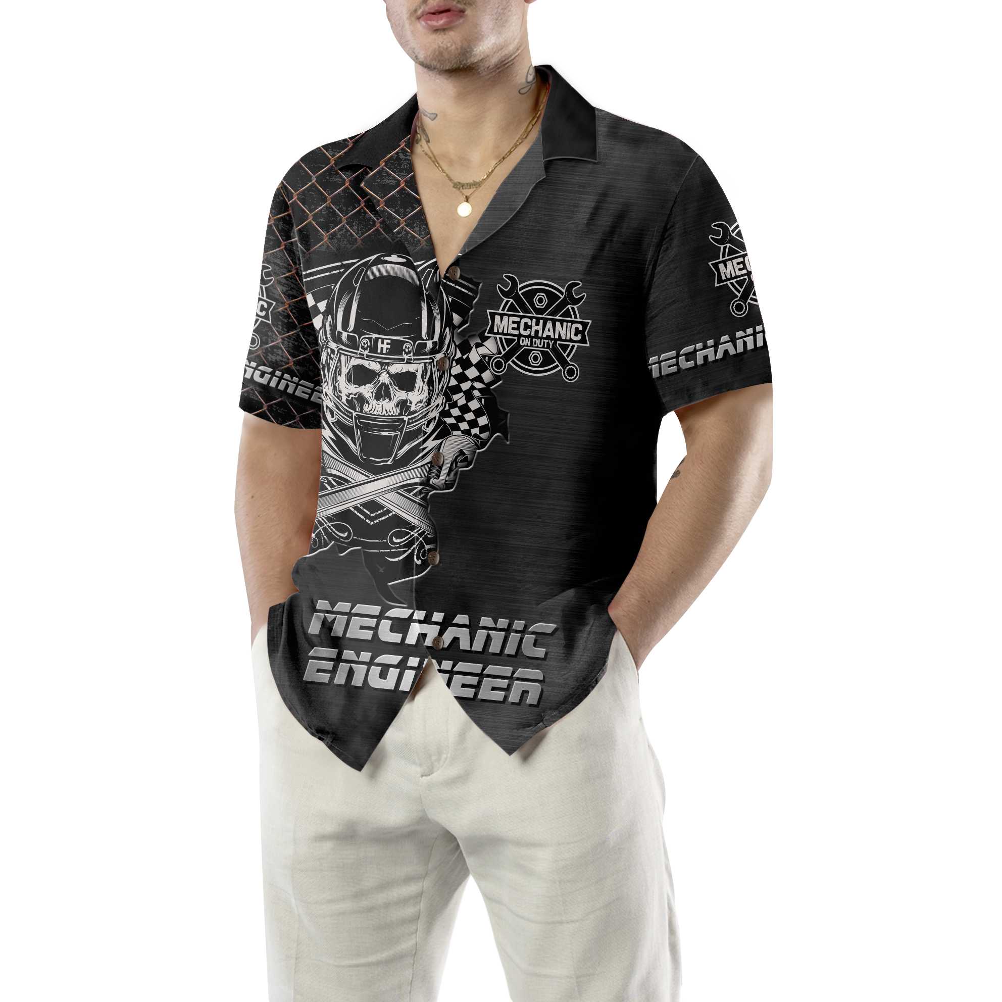 Premium Mechanic Hawaiian Shirt, Cool Skull Mechanic Shirt For Men, Best Gift For Mechanic