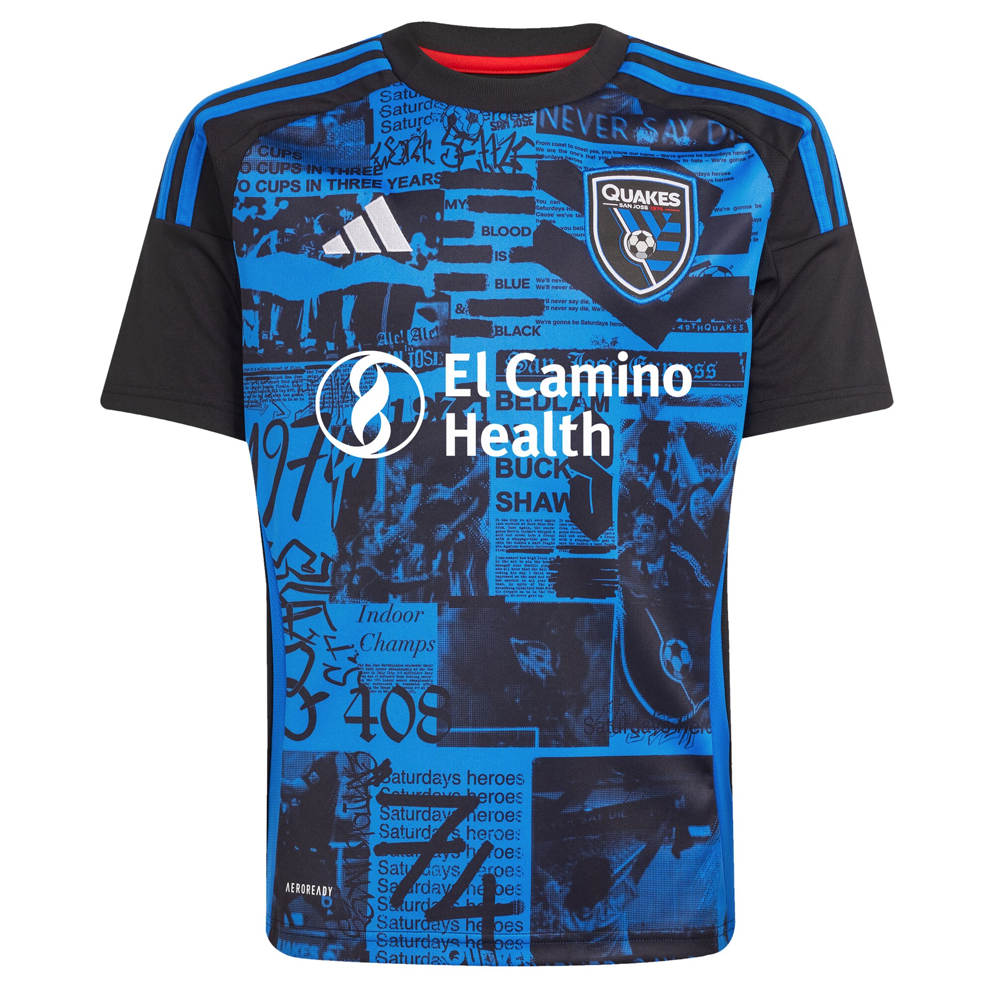 San Jose Earthquakes adidas Youth 2025 Headliner Replica Jersey – Black
