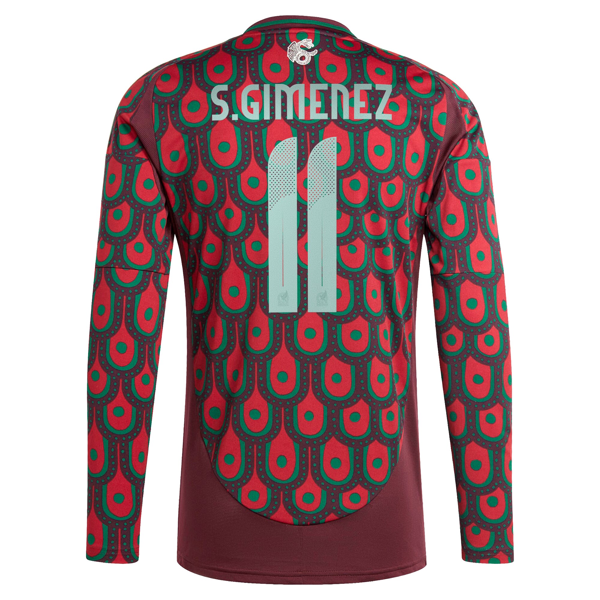 Santiago Giménez Mexico National Team adidas 2024 Home Replica Player Long Sleeve Jersey – Burgundy