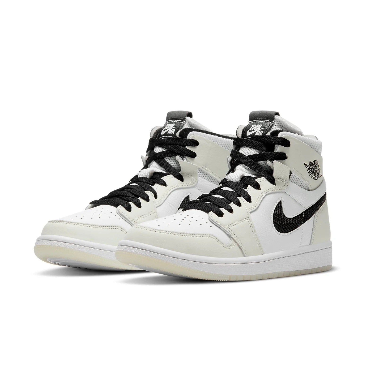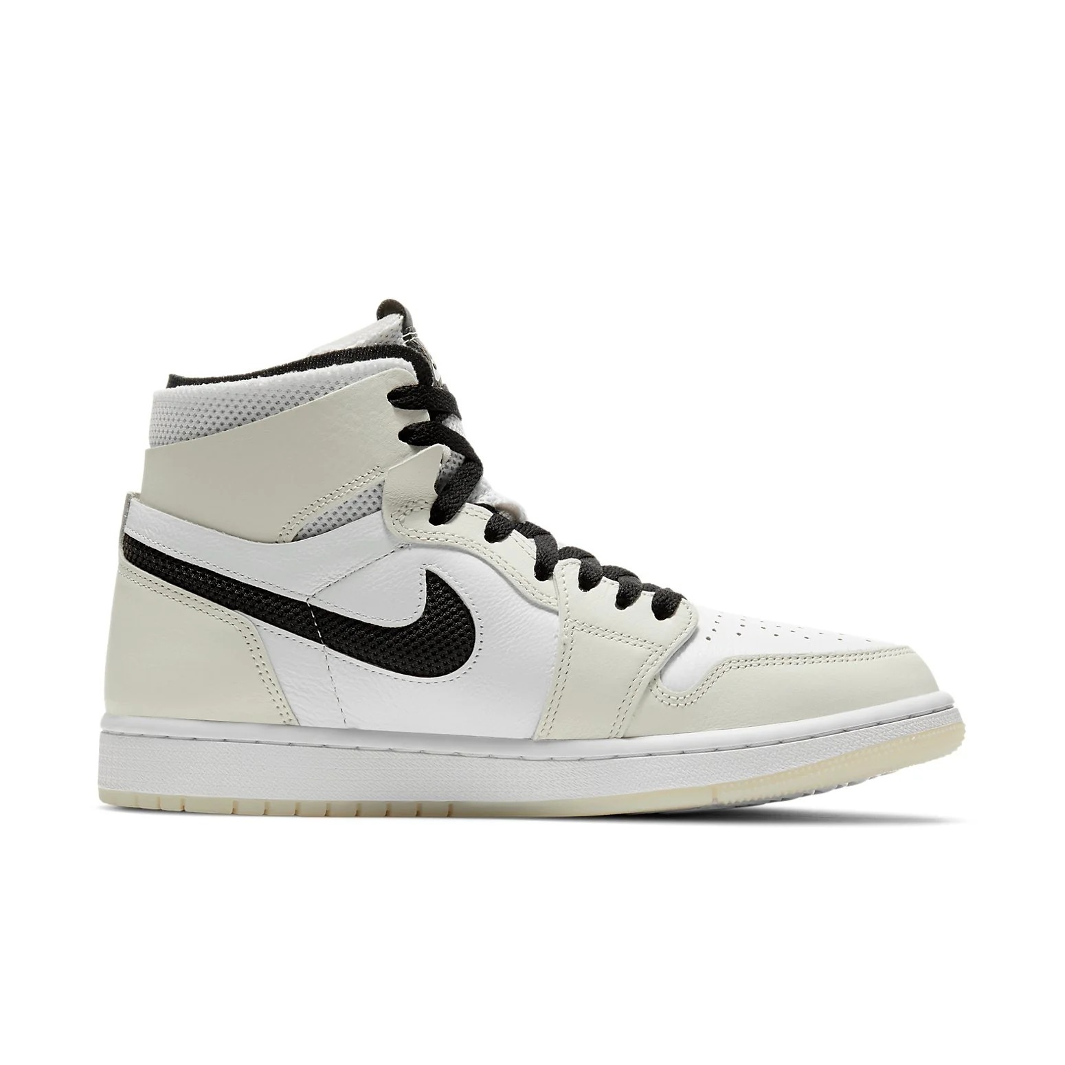 The (WMNS) Air Jordan 1 High Zoom Comfort ‘Light Bone’ CT0979-002 (model number CT0979) was released on April 22, 2021. Part of the Air Jordan 1 High series, this sneaker features a regular sole thickness and a leather upper for a premium look and feel. It uses a traditional lacing system and is built on a durable rubber sole. Designed as a high top with a round, it’s ideal for lifestyle wear. In terms of functionality, the shoe is cushioning, slip-resistant, wearable, making it suitable for every day wear all season. The main color is white, and the official colorway is Sea Glass/Black/White/Sail.
