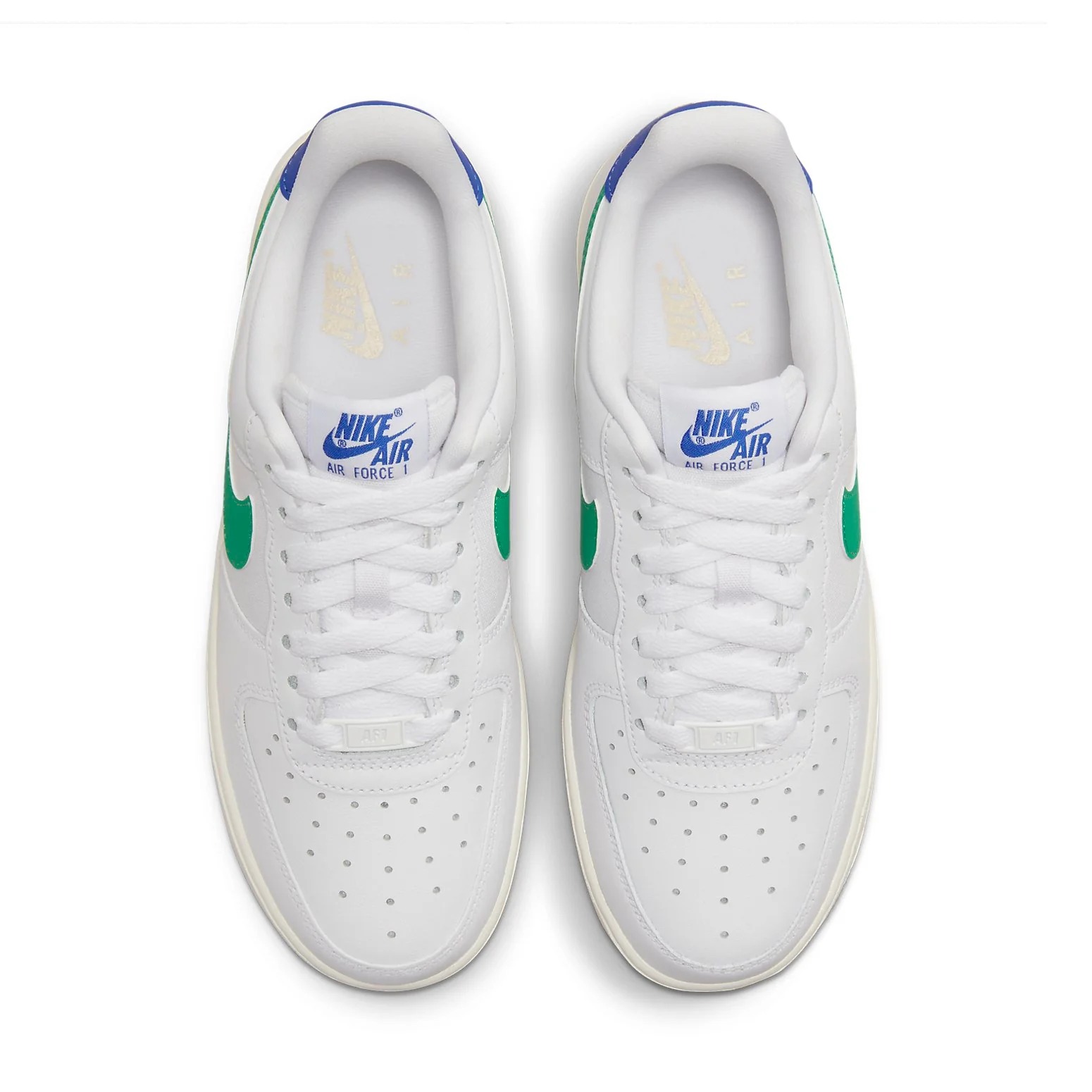 The (WMNS) Nike Air Force 1 ’07 ‘White Stadium Green’ DD8959-110 (model number DD8959) was released on January 09, 2023. Part of the Air Force 1 series, this sneaker features a regular sole thickness and a leather upper for a premium look and feel. It uses a traditional lacing system and is built on a durable rubber sole. Designed as a low top with a round, it’s ideal for lifestyle wear. In terms of functionality, the shoe is well-cushioned and slip-resistant, making it suitable for every day wear. The main color is White, and the official colorway is WHITE/STADIUM GREEN-GAME ROYAL-SANDDRIFT-SAIL-GUM LT BROWN.
