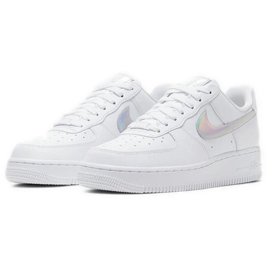 The (WMNS) Nike Air Force 1 Low ‘Iridescent Swoosh’ CJ1646-100 (model number CJ1646) was released on May 19, 2020. Part of the Air Force 1 series, this sneaker features a regular sole thickness and a leather upper for a premium look and feel. It uses a traditional lacing system and is built on a durable rubber sole. Designed as a low top with a round, it’s ideal for lifestyle wear. In terms of functionality, the shoe is slip-resistant, lightweight, making it suitable for every day wear all season. The main color is White, and the official colorway is White.
