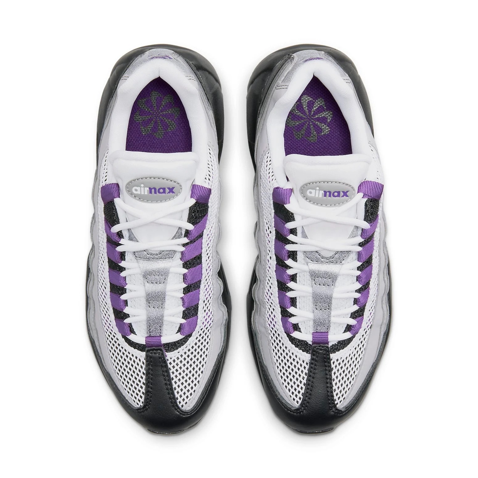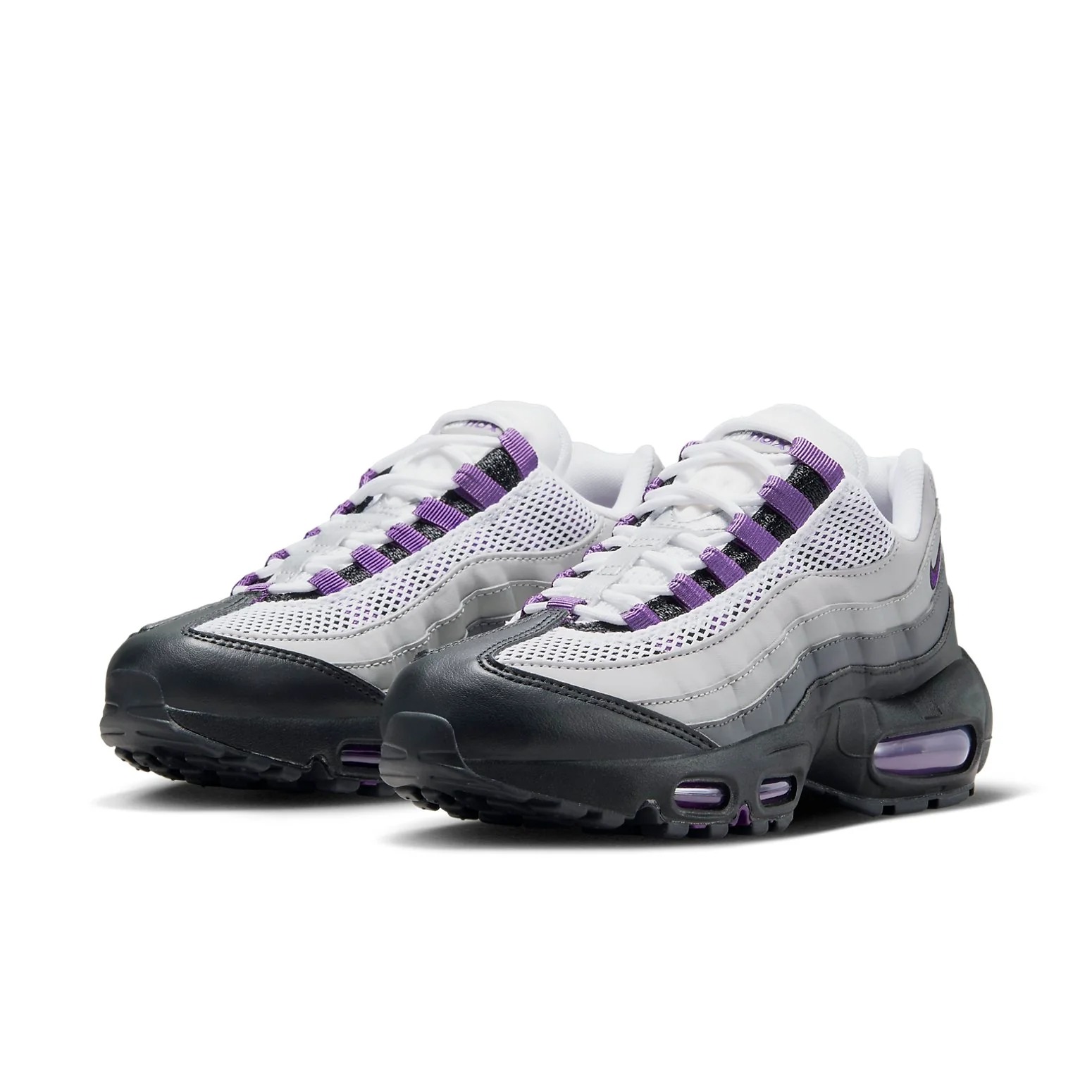 The (WMNS) Nike Air Max 95 Next Nature ‘Disco Purple’ DH8015-003 (model number DH8015) was released on June 26, 2023. Part of the Air Max 95 series, this sneaker features a regular sole thickness and a leather upper for a premium look and feel. It uses a lacing system and is built on a durable rubber sole. Designed as a low top with a round, it’s ideal for lifestyle wear. In terms of functionality, the shoe is well-cushioned and slip-resistant, making it suitable for every day wear. The main color is grey, and the official colorway is Black/Disco Purple/Pearl Grey/Noir.