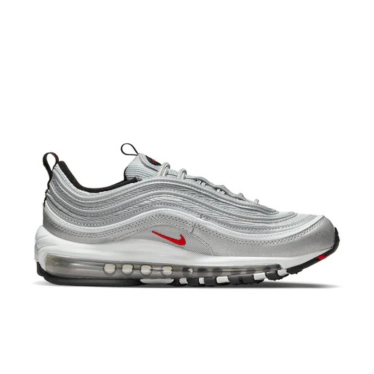 The (WMNS) Nike Air Max 97 OG ‘Silver Bullet’ 2022 DQ9131-002 (model number DQ9131) was released on November 10, 2022. Part of the Air Max 97 series, this sneaker features a regular sole thickness and a leather upper for a premium look and feel. It uses a lacing system and is built on a durable rubber sole. Designed as a low top with a round, it’s ideal for lifestyle wear. In terms of functionality, the shoe is well-cushioned and slip-resistant, making it suitable for every day wear. The main color is Silver, and the official colorway is Grey.