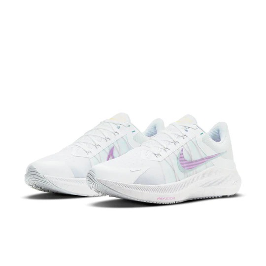 The (WMNS) Nike Air Zoom Winflo 8 ‘Grey Violet Shock’ CW3421-102 (model number CW3421) was released on March 28, 2021. Part of the Winflo 8 series, this sneaker features a regular sole thickness and a mesh upper for a premium look and feel. It uses a traditional lacing system and is built on a durable eva foam sole. Designed as a low top with a round, it’s ideal for running wear. In terms of functionality, the shoe is well-cushioned and slip-resistant, making it suitable for every day wear all season. The main color is White, and the official colorway is White/Grey/Violet Shock/Infinite Lilac.