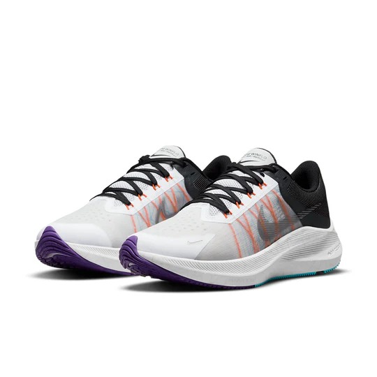 The (WMNS) Nike Air Zoom Winflo 8 ‘White Black’ CW3421-103 Womens (model number CW3421) was released on March 24, 2021. Part of the Winflo 8 series, this sneaker features a regular sole thickness and a mesh upper for a premium look and feel. It uses a traditional lacing system and is built on a durable eva foam sole. Designed as a low top with a round, it’s ideal for running wear. In terms of functionality, the shoe is cushioning, slip-resistant, wearable, making it suitable for every day wear all season. The main color is White, and the official colorway is White/Blue/Purple/Black/Orange.