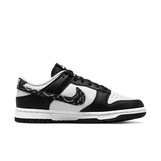 The (WMNS) Nike Dunk Low ‘Black Paisley’ DH4401-100 (model number DH4401) was released on March 10, 2022. Part of the Dunk Low series, this sneaker features a regular sole thickness and a leather upper for a premium look and feel. It uses a traditional lacing system and is built on a durable rubber sole. Designed as a low top with a round, it’s ideal for lifestyle wear. In terms of functionality, the shoe is well-cushioned and slip-resistant, making it suitable for every day wear all season. The main color is BLACK, and the official colorway is Black/White.