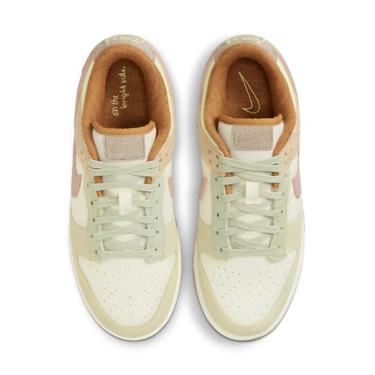 The (WMNS) Nike Dunk Low ‘On The Bright Side’ DQ5076-121 (model number DQ5076) was released on February 03, 2022. Part of the Dunk Low series, this sneaker features a regular sole thickness and a leather upper for a premium look and feel. It uses a traditional lacing system and is built on a durable rubber sole. Designed as a low top with a round, it’s ideal for lifestyle wear. In terms of functionality, the shoe is slip-resistant, wearable, lightweight, making it suitable for every day wear all season. The main color is GREEN, and the official colorway is Green/White/Pink/Brown.