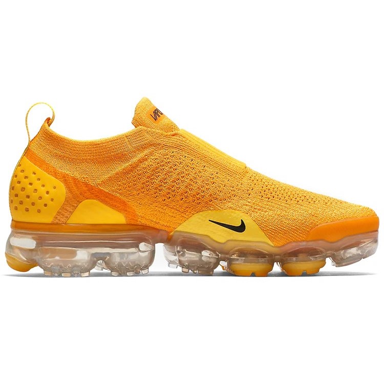 The (WMNS) Nike VaporMax Moc 2 ‘University Gold’ AJ6599-700 (model number AJ6599) was released on May 10, 2018. This sneaker features a regular sole thickness and a upper for a premium look and feel. It uses a traditional lacing system and is built on a durable rubber sole. Designed as a with a round, it’s ideal for lifestyle wear. In terms of functionality, the shoe is cushioning, balancing, making it suitable for every day wear all season. The main color is black, and the official colorway is University Gold/Black.